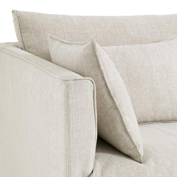 Une belle finition passepoilée, ton sur ton, souligne les proportions parfaitement équilibrées de ce canapé à la fois classique et contemporain. Fabrication française.Confort d'assise : moelleux