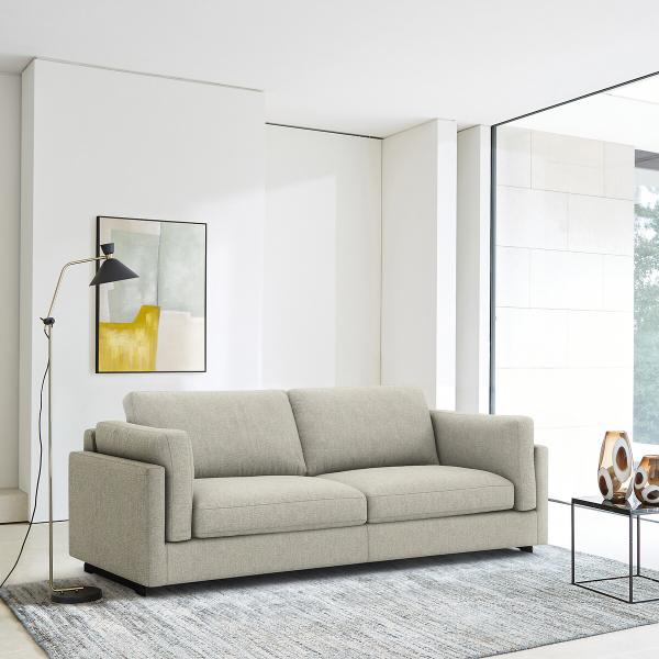 César, se caractérise par une ligne contemporaine, intemporelle, simple et élégante. Son garnissage généreux offre une grande expérience de confort.Les belles proportions et l'esthétique légère et épurée de ce canapé sont soulignés par deux pieds transversaux ce qui lui donnent l’impression de flotter dans l’air. Fabriqué en Italie.