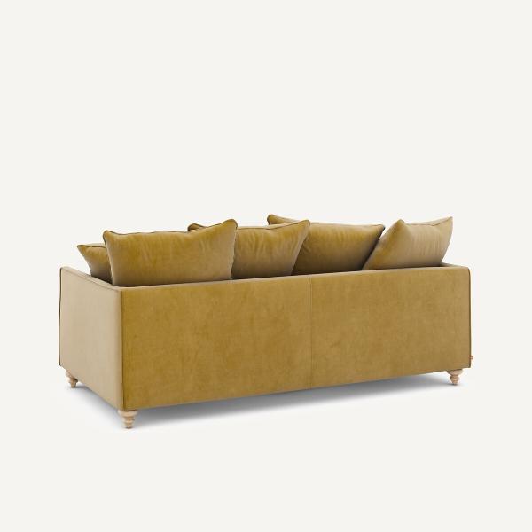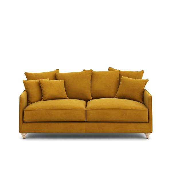 Fabrication italienne sur demande, velours de polyester souple et résistant, pieds en bois massif... son assise profonde et moelleuse conjuguée à ses multiples coussins en font un canapé totalement dédié au confort. Un iconique signé AMPM.