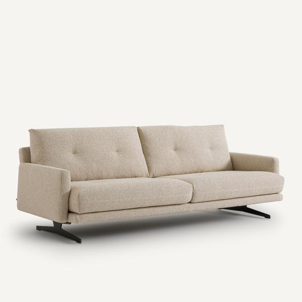 Ligne contemporaine et élégante. Aérien grâce à son piètement métal, Delicato est un canapé dont le trait distinctif réside dans l'originalité de son profil : ses accoudoirs sont en retrait sur l’avant, et découpés à l’arrière.Ses coussins capitonnés invitent au bien-être. Ce canapé fabriqué en Italie et signé AMPM donne du caractère à l'espace qui l'entoure.