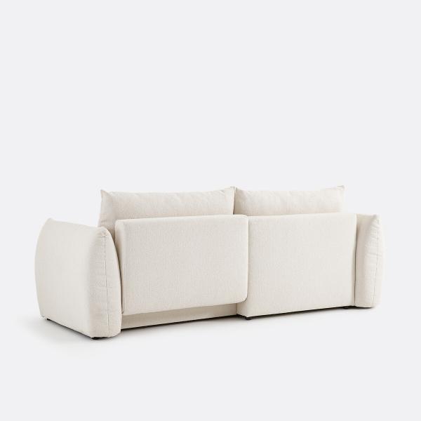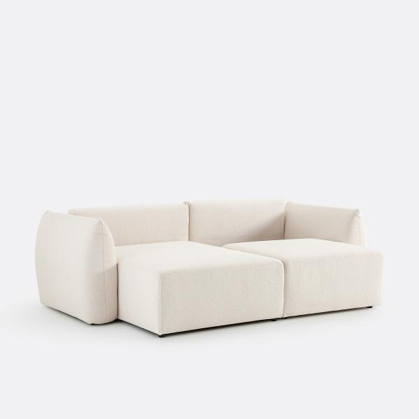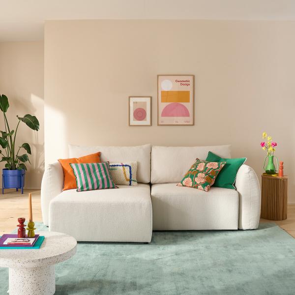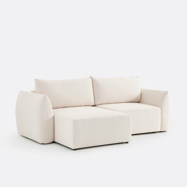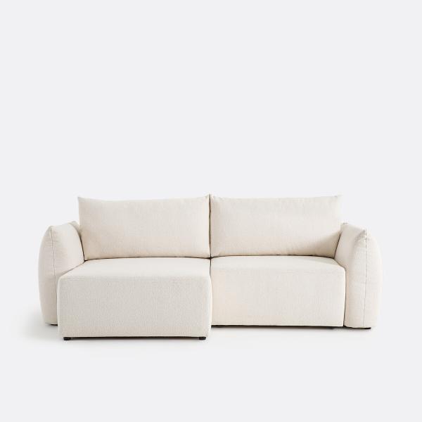 Canapé d'angle convertible, bouclette fine, Edith Ecru Réversible