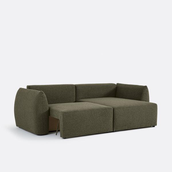 Canapé d'angle convertible, bouclette fine, Edith Vert Réversible