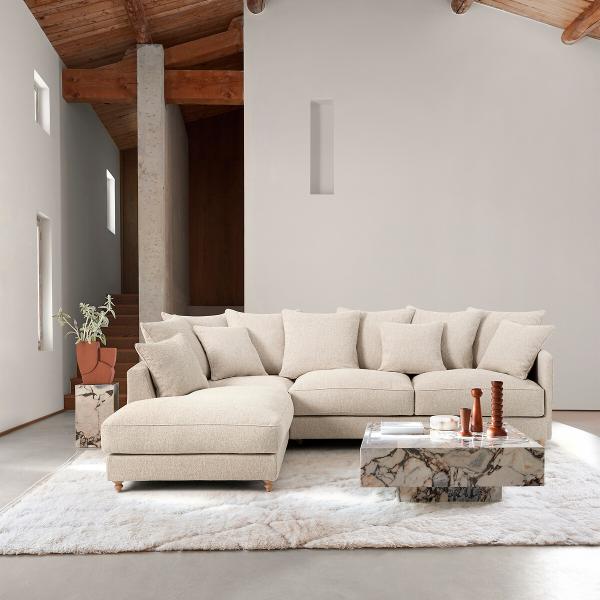 Canapé d'angle convertible bouclette, Lazare Sable Gauche