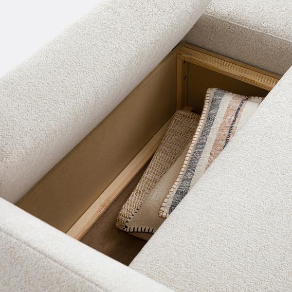 Fabriqué en France, ses matériaux et ses finitions ont bénéficié d’un soin tout particulier. Côté pratique, il cache sous son assise un coffre de rangement et son angle est réversible pour s'adapter à votre pièce. Un canapé dédié à la détente, idéal pour se lover.