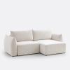Canapé d'angle convertible, tissu texturé, Edith Ecru Réversible