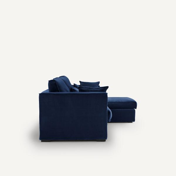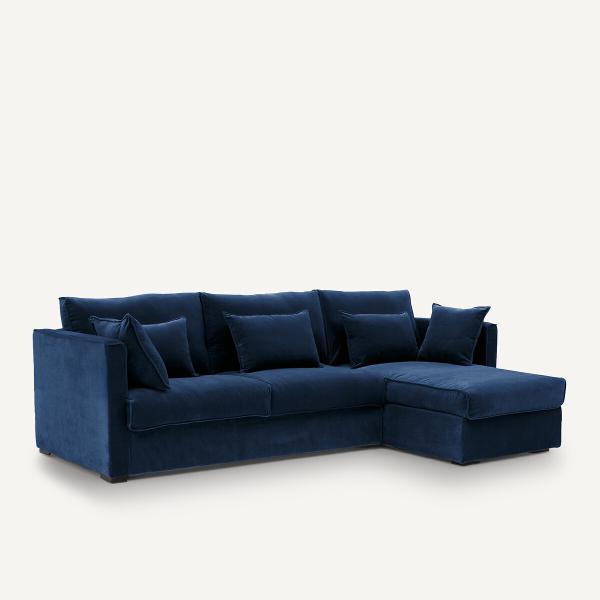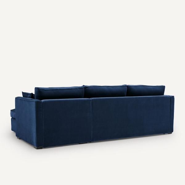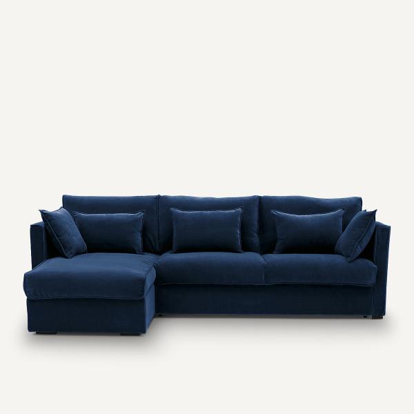 Canapé d'angle convertible velours, Camille Bleu nuit Réversible