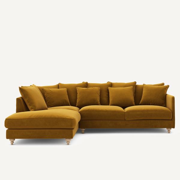 Canapé d'angle convertible velours, Lazare Chamois Droit