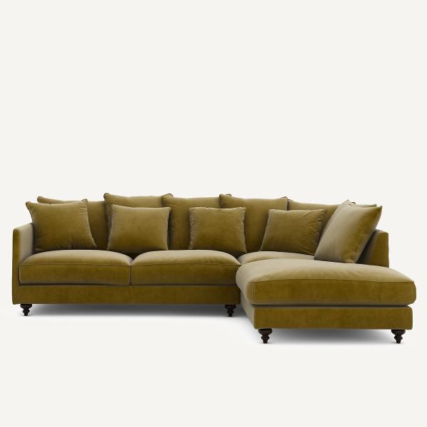 Canapé d'angle convertible velours, Lazare Olive Gauche