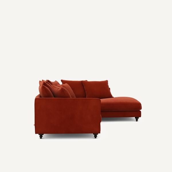 Canapé d'angle convertible velours, Lazare Rouge cinabre Gauche