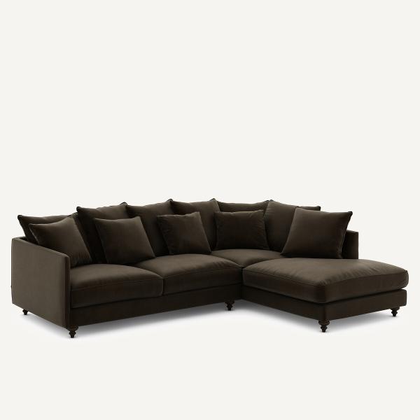 Canapé d'angle convertible velours, Lazare Vert lichen Gauche