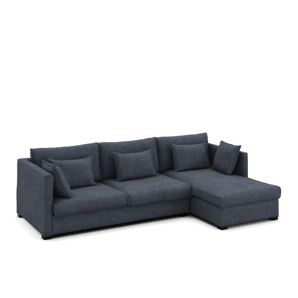 Canapé d'angle coton/lin, Camille Bleu nuit Droit