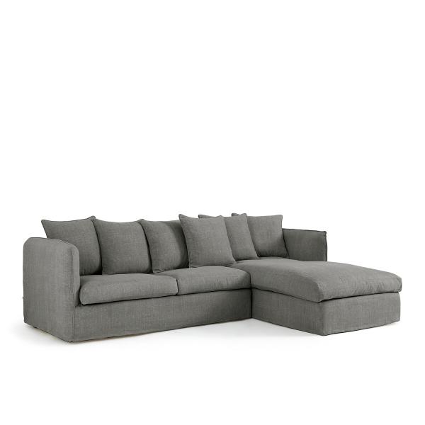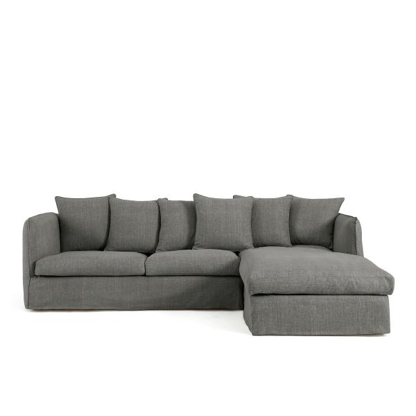 Canapé d'angle coton/lin, Néo Chiquito Anthracite Droit