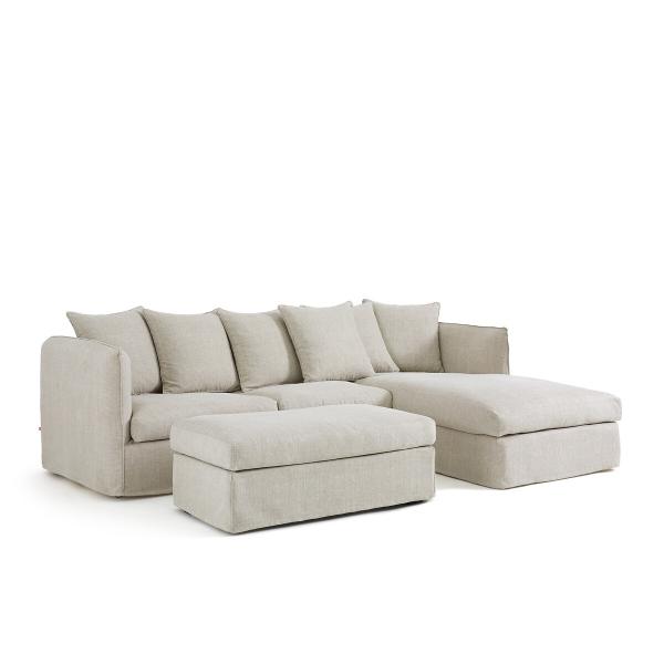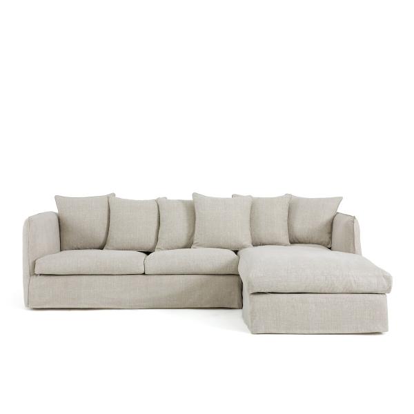 Canapé d'angle coton/lin, Néo Chiquito Beige Droit