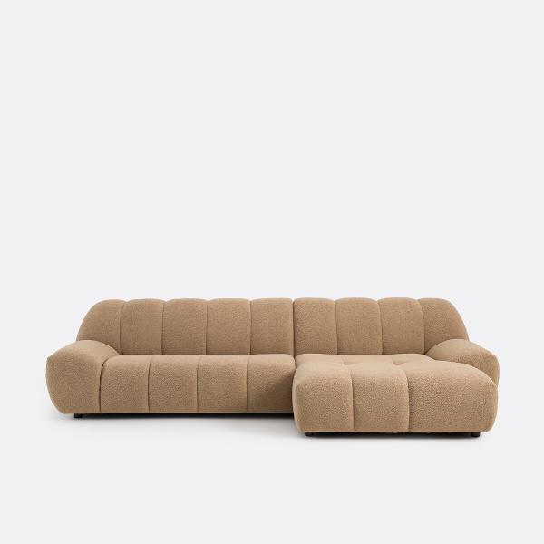 Canapé d'angle droit, bouclette épaisse, Nuria Bleu Droit