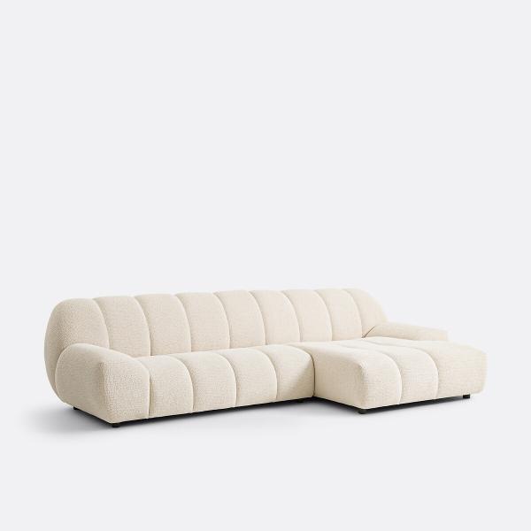 Canapé d'angle droit, tissu jaguar, Nuria Ecru Droit