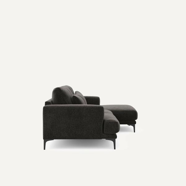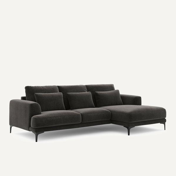 Canapé d'angle droit velours chenille, Marsile Basalte Droit