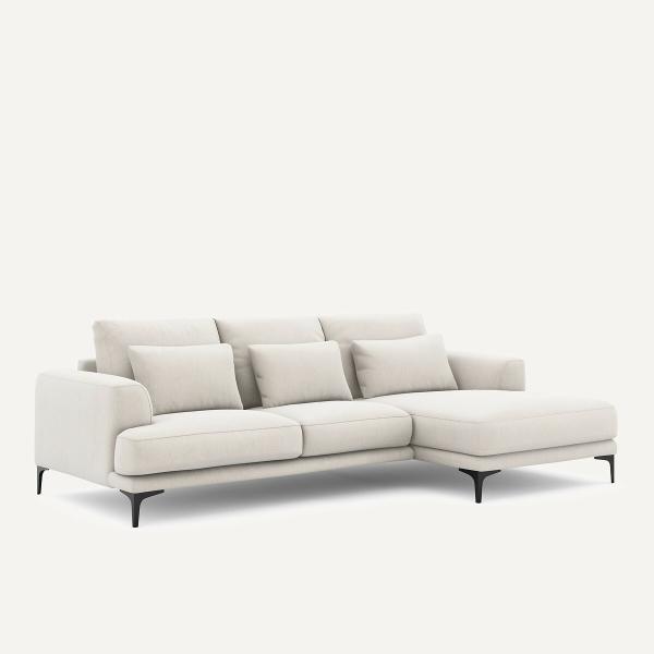 Canapé d'angle droit velours chenille, Marsile Blanc Droit