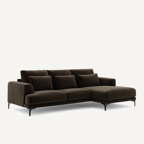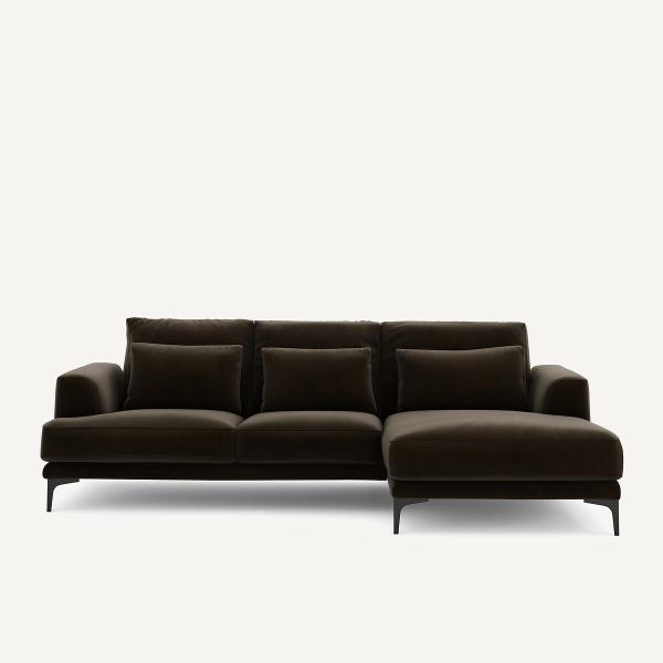 Canapé d'angle droit velours, Marsile Vert lichen Droit