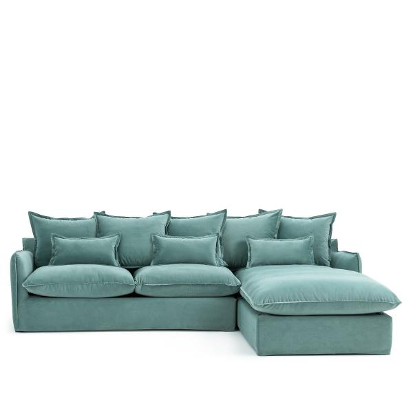 Canapé d'angle droit velours, Odna Bleu céladon Droit