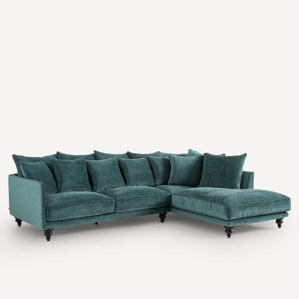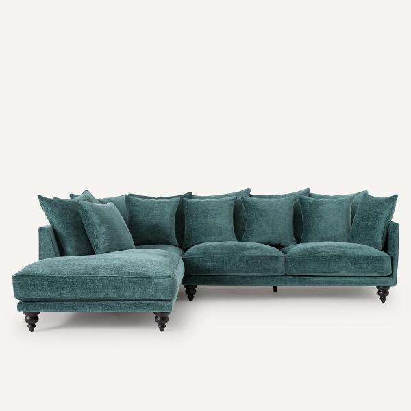 Canapé d'angle, polyester recyclé, Lazare Bleu pétrole Gauche