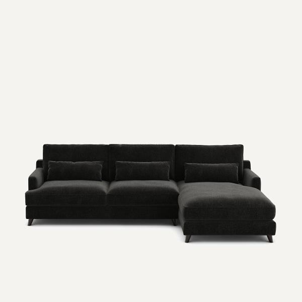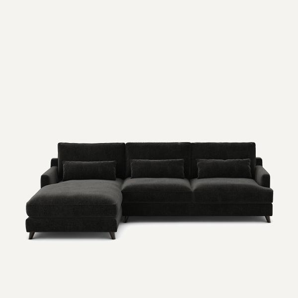 Canapé d'angle velours chenille, Alwine Carbone Gauche