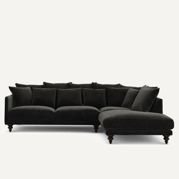 Canapé d'angle velours chenille, Lazare Carbone Droit
