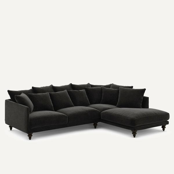Canapé d'angle velours chenille, Lazare Carbone Gauche