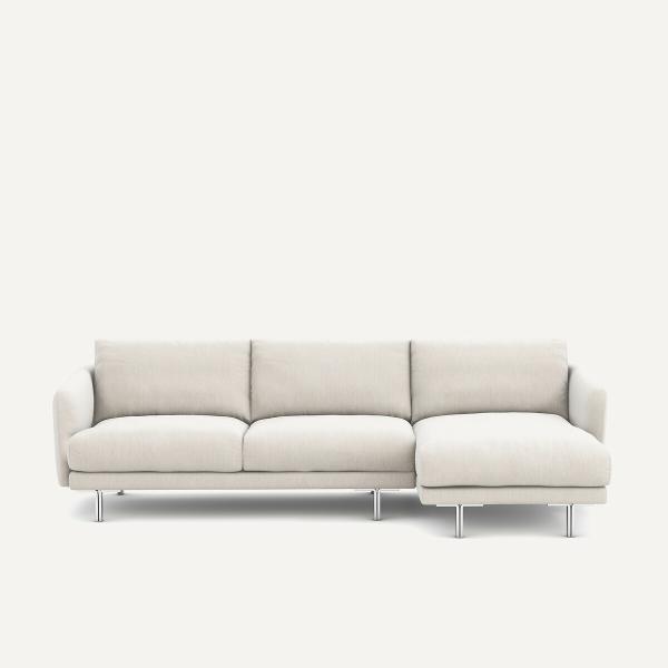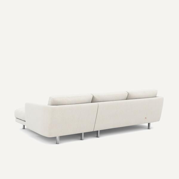 Structure arrondie, piètement épuré en métal chromé, accoudoirs inclinés et légèrement rebondis... Le canapé d'angle Nogara réinterprète les codes classiques de manière sophistiquée.Ses coussins particulièrement moelleux assurent un niveau exceptionnel de confort. Une création contemporaine qui reflète l’art de vivre selon AMPM. Fabriqué en Italie.