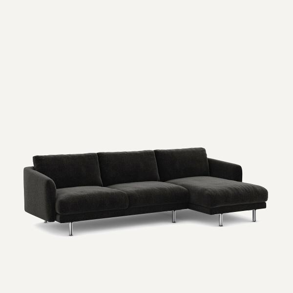 Canapé d'angle velours chenille, Nogara Carbone Droit