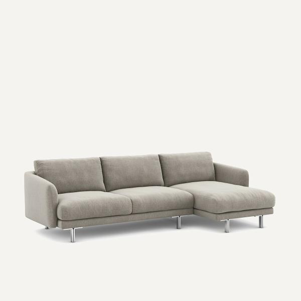 Structure arrondie, piètement épuré en métal chromé, accoudoirs inclinés et légèrement rebondis... Le canapé d'angle Nogara réinterprète les codes classiques de manière sophistiquée.Ses coussins particulièrement moelleux assurent un niveau exceptionnel de confort. Une création contemporaine qui reflète l’art de vivre selon AMPM. Fabriqué en Italie.