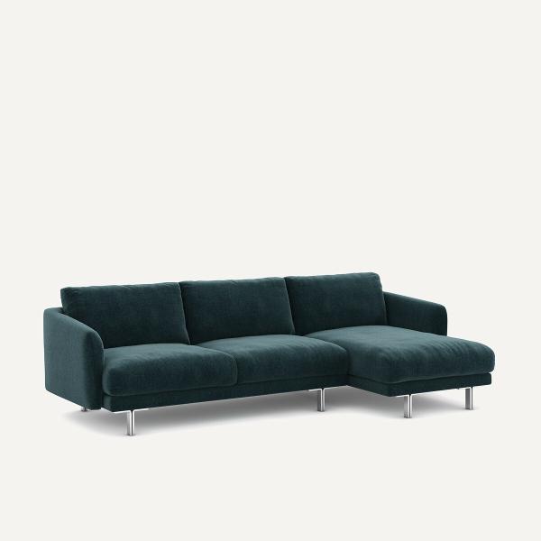 Canapé d'angle velours chenille, Nogara Vert sarcelle Droit