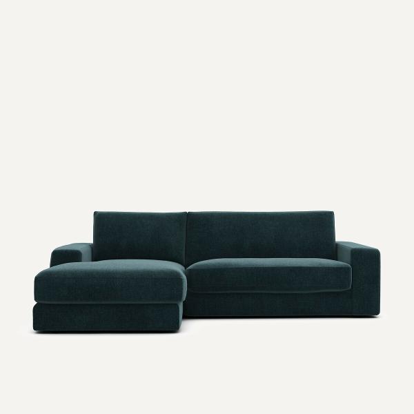 Canapé d'angle velours chenille, Skander Vert sarcelle Gauche