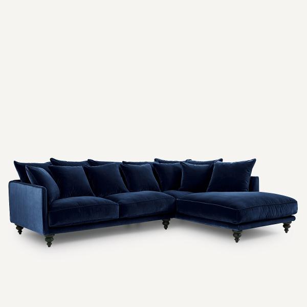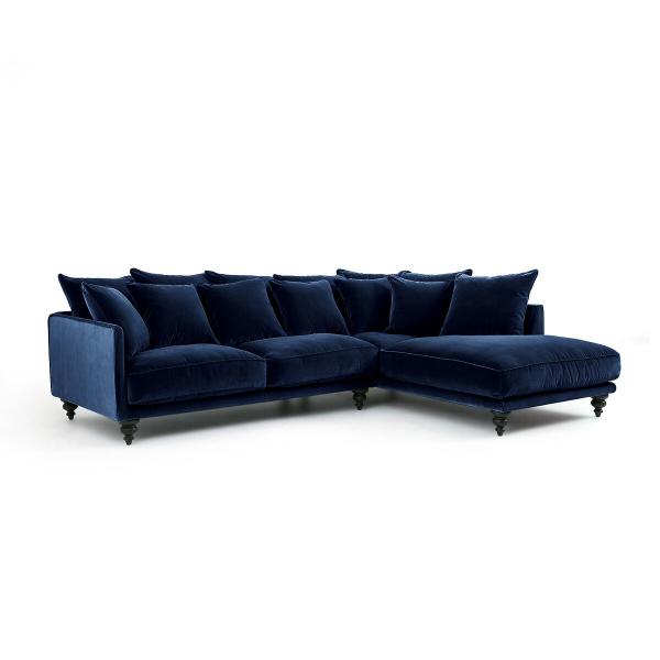 Canapé d'angle velours, Lazare Bleu nuit Droit