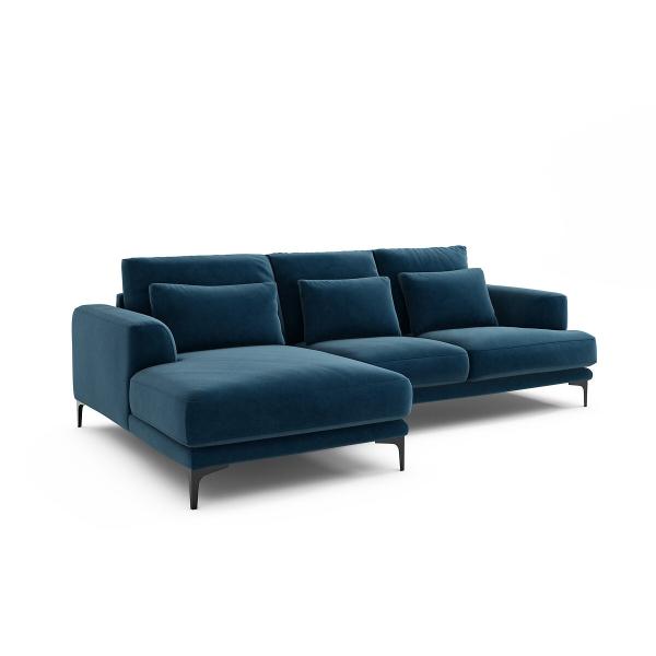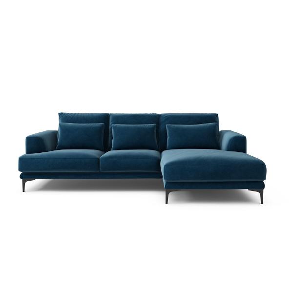 Canapé d'angle velours, Marsile Bleu paon Droit