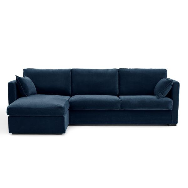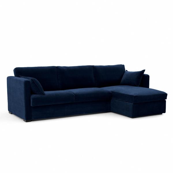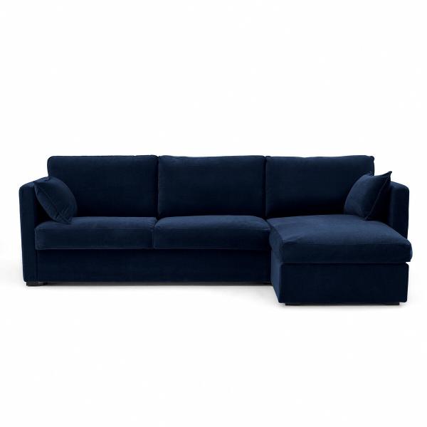 Canapé d’angle velours, Neo Kinkajou Bleu nuit Droit