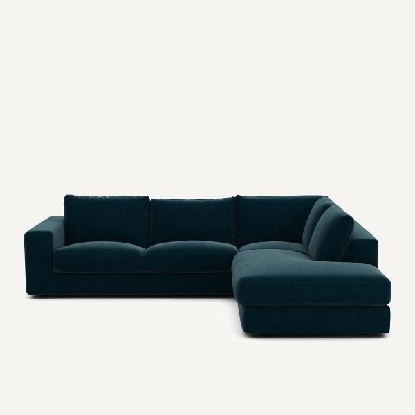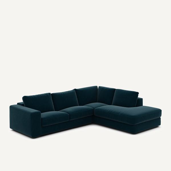 Canapé d’angle velours, Skander Bleu paon Gauche