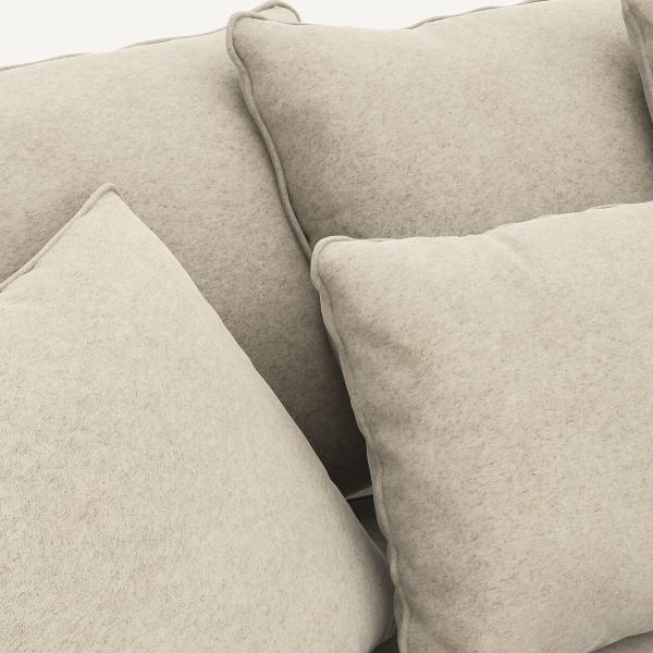 - Assise (2 coussins pour les 3 et 4 places, 3 coussins pour le 5 places) : mousse polyuréthane densité 35 kg/m³ et flocons de fibre polyester pour un accueil équilibré