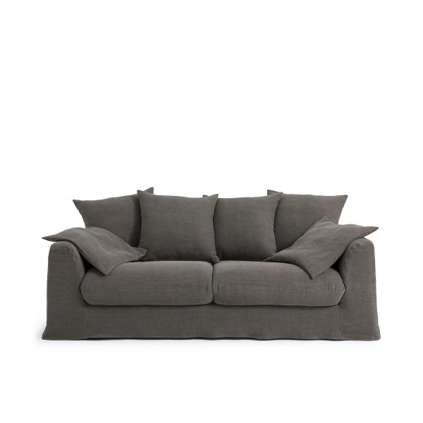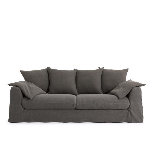 Canapé lin épais stonewashed, Marcoli Argile fumée 4P