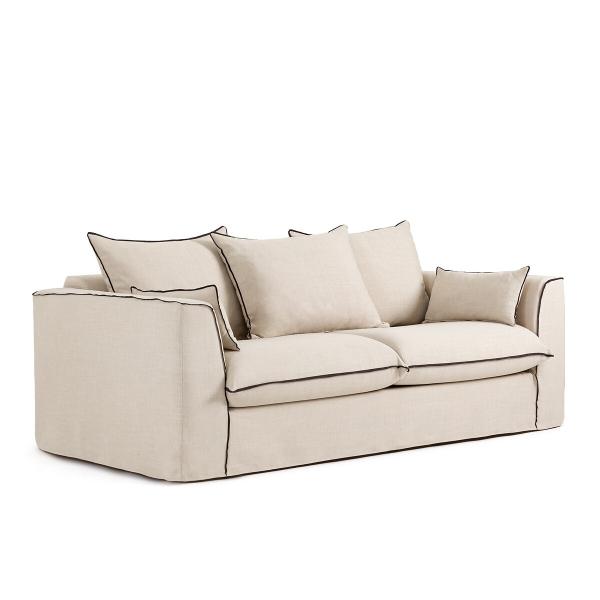 Canapé mélange viscose, Flavia Naturel/noir 4P