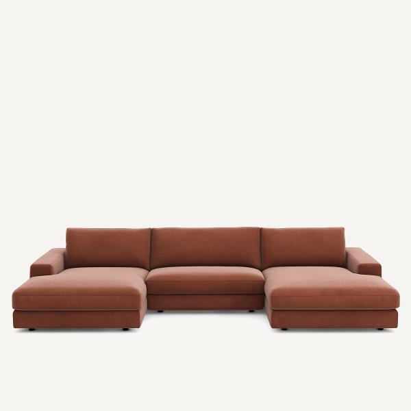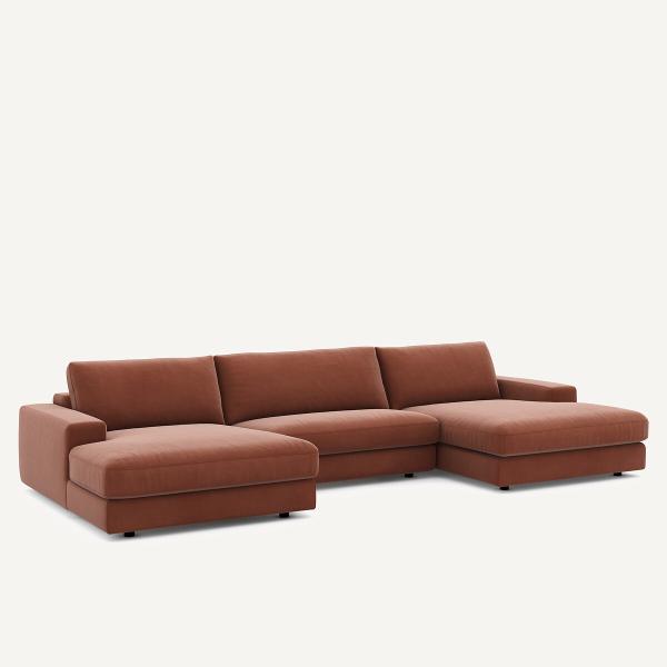Canapé panoramique velours, Skander Terre cuite 5P