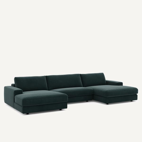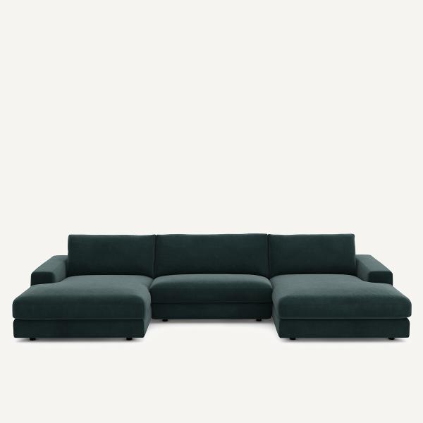 Canapé panoramique velours, Skander Vert cèdre 5P