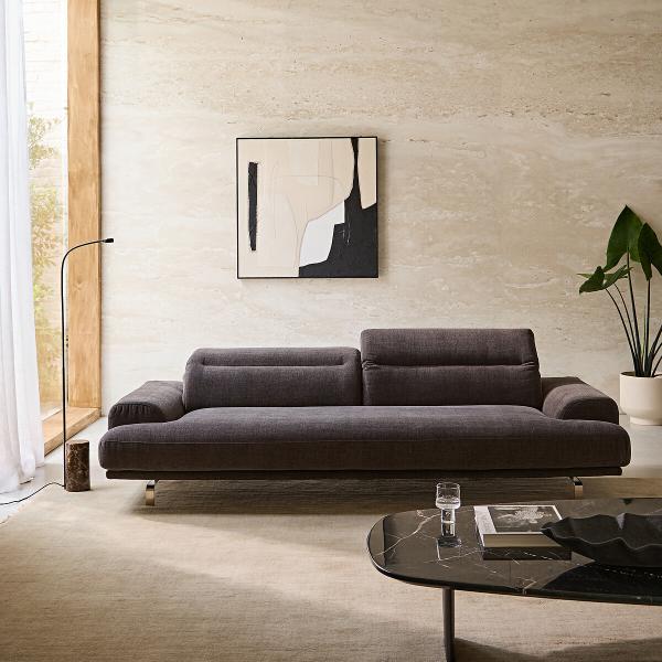 Horizontalité, équilibre des lignes et confort modulable. Canapé au design contemporain, Orizonte combine lignes graphiques et courbes douces.Pour un confort presque sur-mesure, ses coussins de dossier s’abaissent et se relèvent manuellement en 3 positions. Sa silhouette basse est comme suspendue. Un effet accentué par la finesse du piètement, qui vient souligner la linéarité de son assise. Une création signée AMPM.