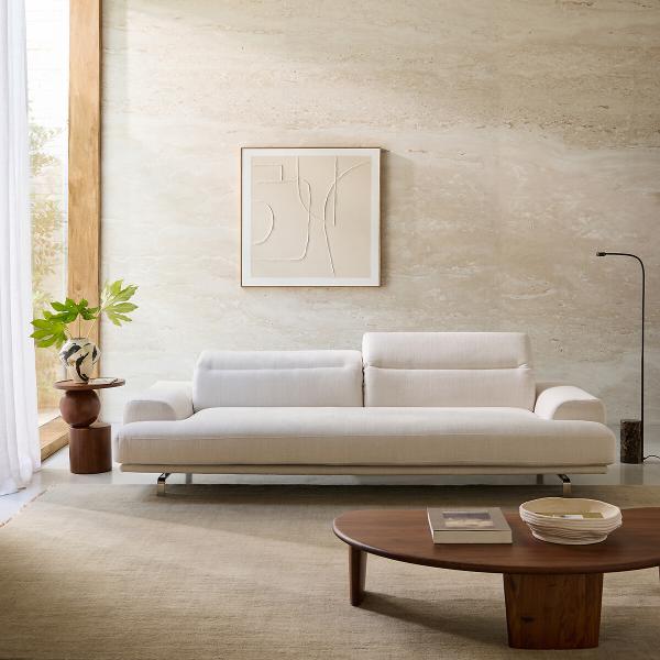 Horizontalité, équilibre des lignes et confort modulable. Canapé au design contemporain, Orizonte combine lignes graphiques et courbes douces.Pour un confort presque sur-mesure, ses coussins de dossier s’abaissent et se relèvent manuellement en 3 positions. Sa silhouette basse est comme suspendue. Un effet accentué par la finesse du piètement, qui vient souligner la linéarité de son assise. Une création signée AMPM.