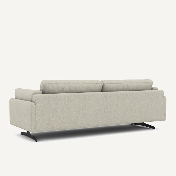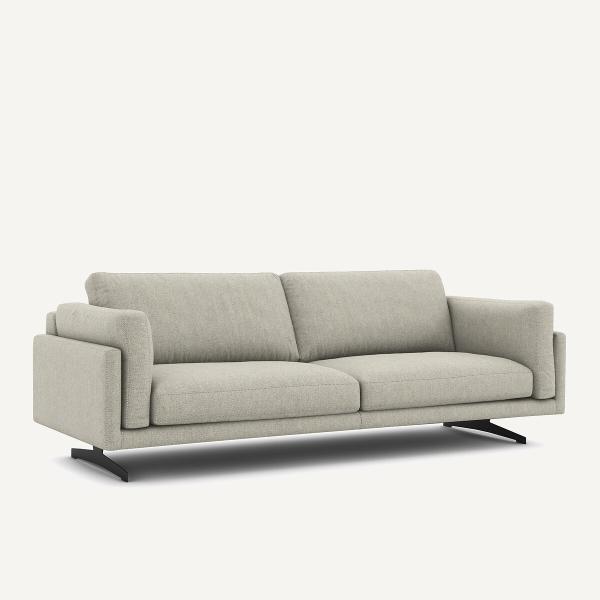 Canapé fixe tweedé César. Fabrication Italienne. César, se caractérise par une ligne contemporaine, intemporelle, simple et élégante.Son coussin se dépose délicatement sur l'accoudoir et son garnissage généreux offre une grande expérience de confort. Les belles proportions et l'esthétique légère et épurée de ce canapé sont soulignés par deux pieds transversaux ce qui lui donnent l’impression de flotter dans l’air.