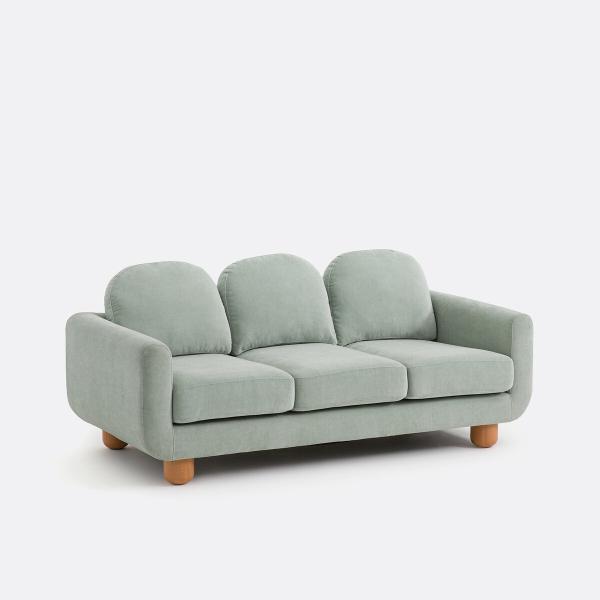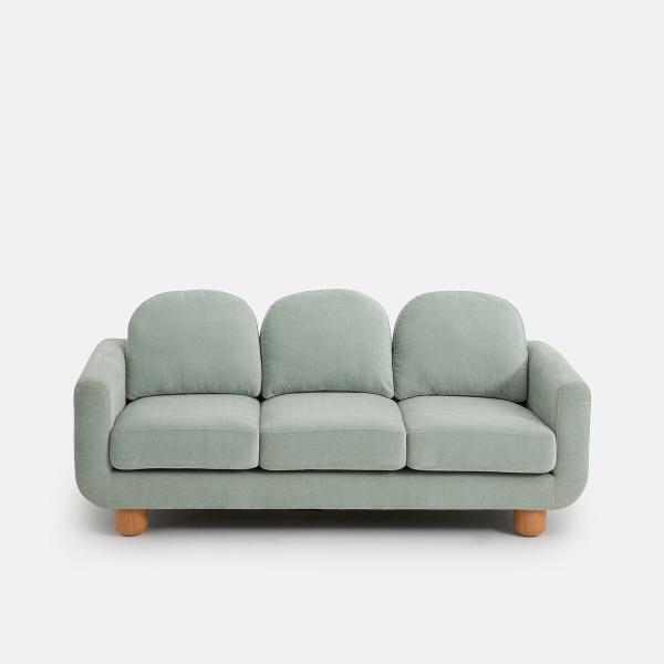 Canapé velours 3 places, Mimiji Eucalyptus 2P