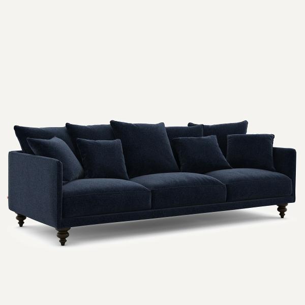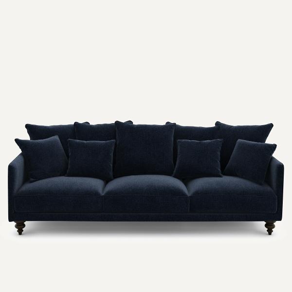 Canapé velours chenille, Lazare Bleu de minuit 3P