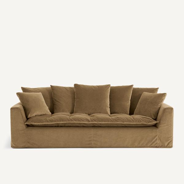 Canapé Velours de lin, Otavia Vert ambré 4P