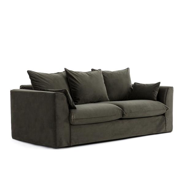 Canapé velours, Flavia Vert kaki 4P