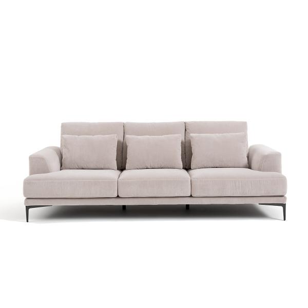 - Coussins d'assise (2 coussins pour le canapé 3 places, 3 coussins pour le canapé 4 places) : marteaux garnis de polyuréthane 23/35 kg/m3 et de ouate polyester
