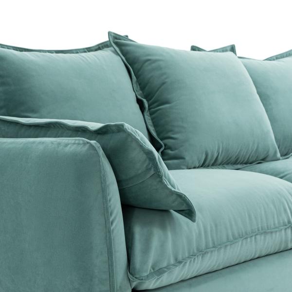 - Assise (2 coussins) : mousse 28kg/m³ et poche remplie de fibres polyester (65%) et flocons de mousse polyether (35%)